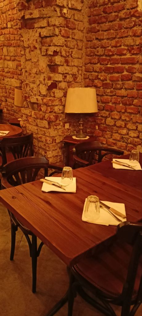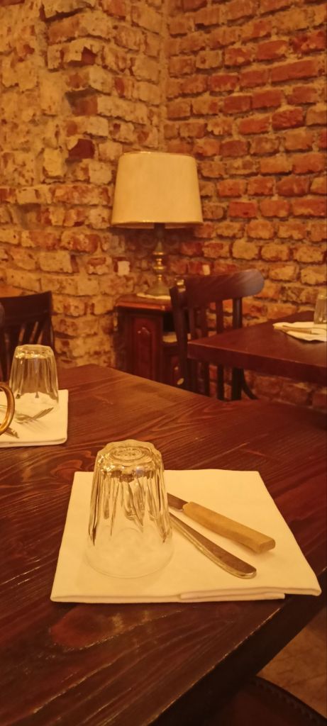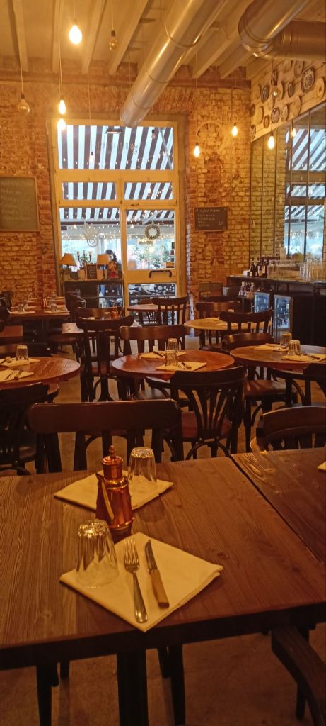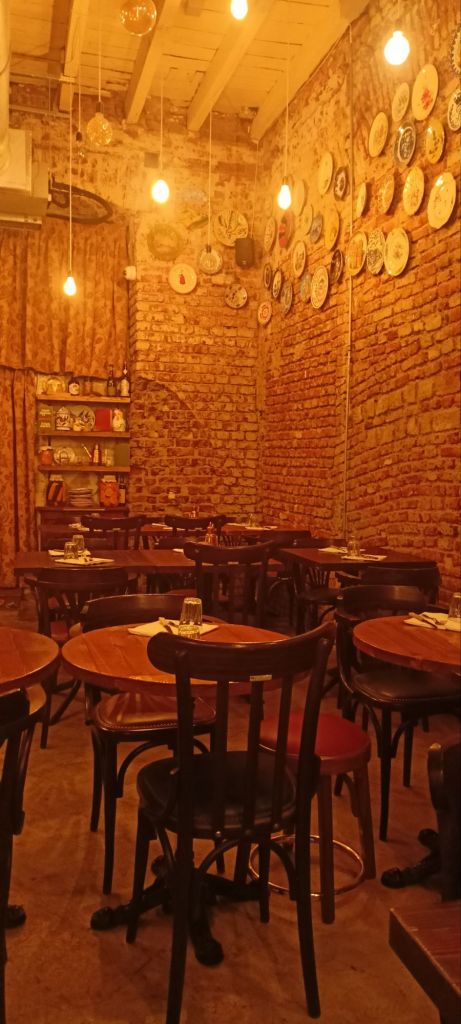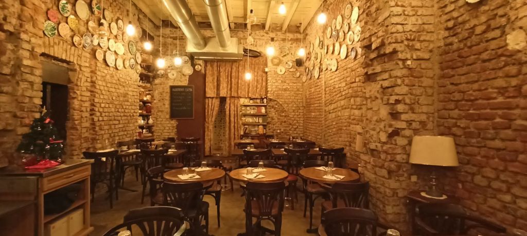 I piatti appesi e i tavoli rustici accolgono il cliente facendolo sentire a casa.