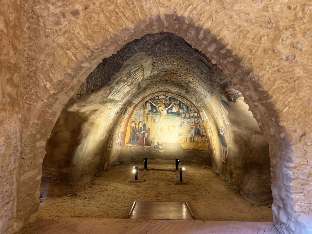 La Chiesa rupestre sorge a circa 4 chilometri dal paese e s’ipotizza che servisse da refettorio e da dormitorio.