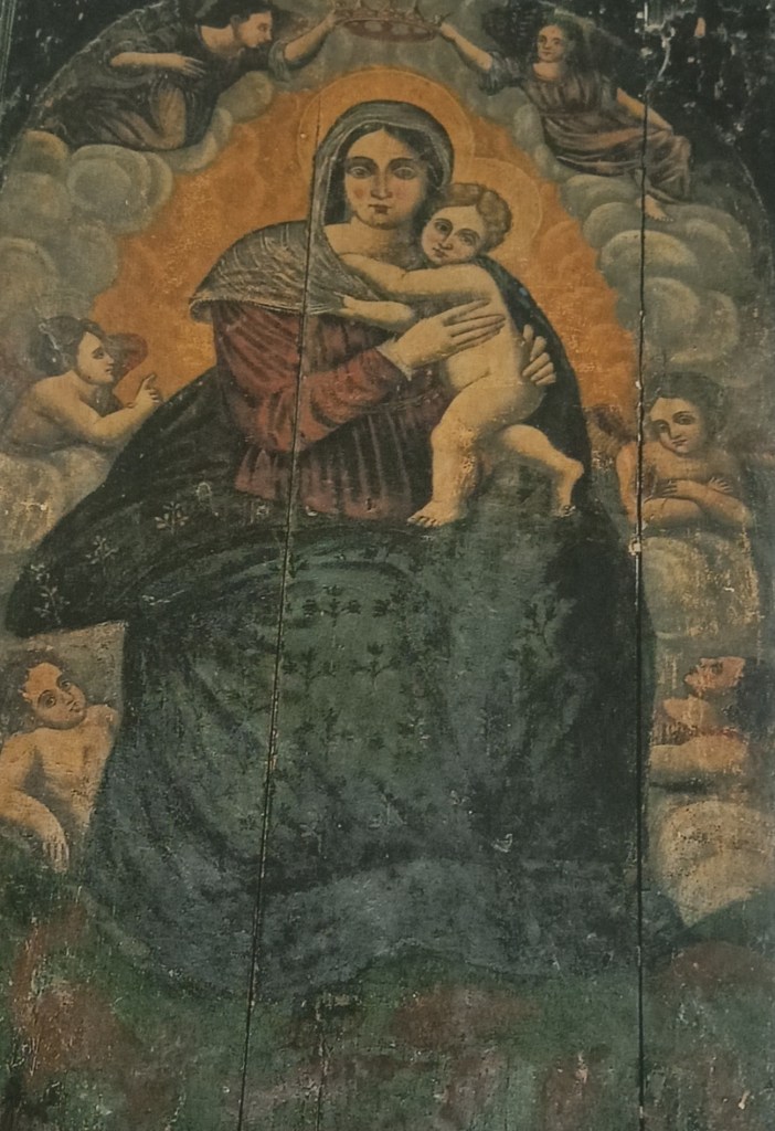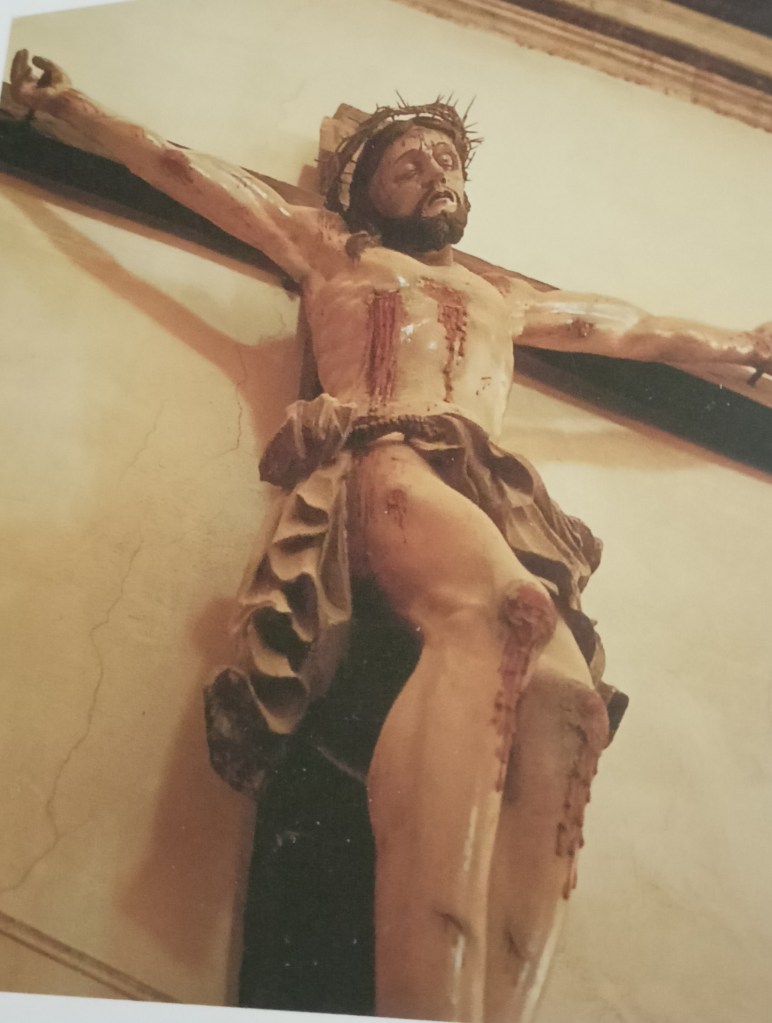 Notiamo,poi,un crocifisso dal realismo impressionante e caratterizzato da una perfezione anatomica incredibile: le ferite del martirio sembrano zampillare e lo sguardo di dolore e strazio si può sentire in tutto il suo grido disperato. Inoltre è visibile anche una tela dove viene rappresentata la madonna e, ai suoi piedi, i santi Antonio e Gaetano. Quest’ultimo quadro sembra essere di scuola napoletana.