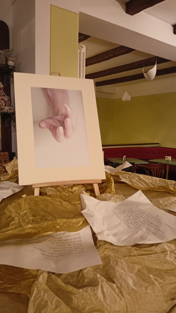 Un’ evento poliedrico dove poesia, musica e fotografia si sono unite per creare un esposizione multisensoriale dove le mani, assolute protagoniste, hanno aperto le porte a quella sensazione infinita di stupore e bellezza che solo l’arte può donare. Curata in ogni dettaglio da Arte Condivisibile, che si occupa di Arteterapia da diversi anni nel territorio, la mostra si sviluppa in modo assolutamente innovativo e interattivo. Si è parte dell’esposizione, non semplici spettatori.