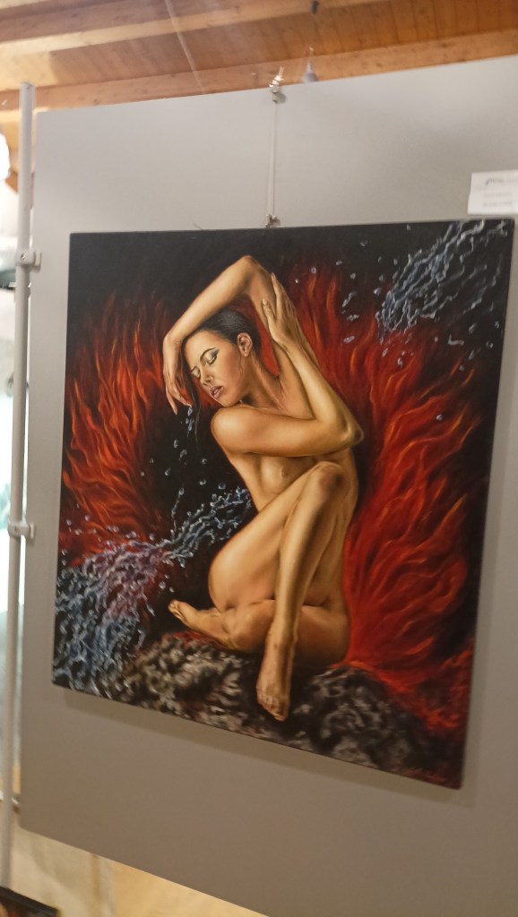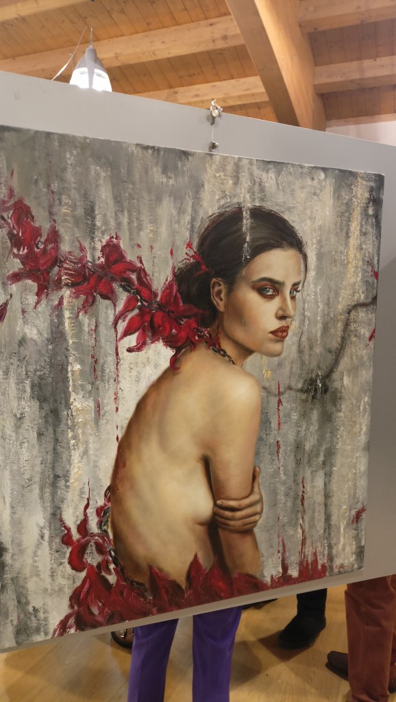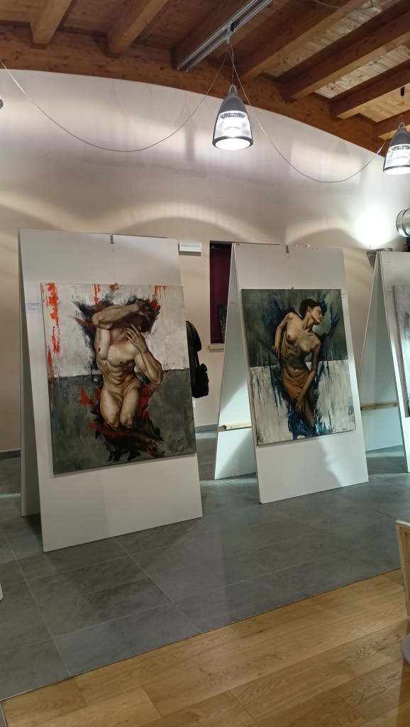 Corpi plastici, di cui alcuni ricordano i tratti di Michelangelo, che sembrano uscire da una tela per unirsi allo spettatore. Entrando completamente nella sua anima. Emozioni a nudo, espresse mediante figure oniriche: quasi delle dee.