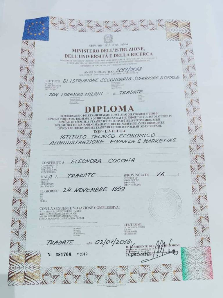 E così, grazie al grande amore di chi l’ha conosciuta e a quel grande uragano di affetto che lei stessa ha generato, il preside dell’Istituto Don Milani di Tradate ha fatto in modo che avvenisse il tanto desiderato conseguimento e relativa consegna.