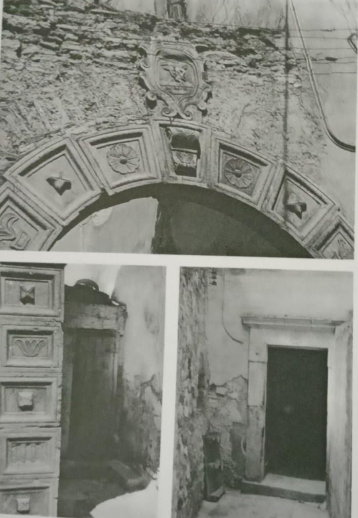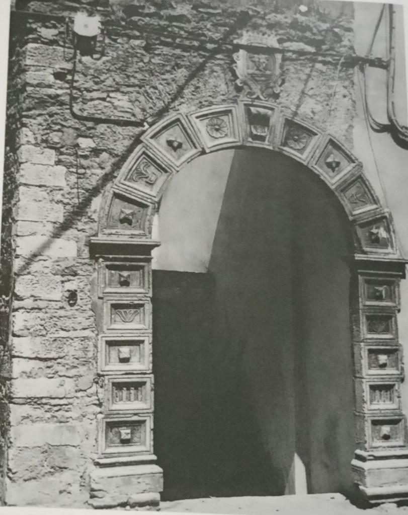 Sempre percorrendo la strada della chiesa madre troviamo uno dei portoni più interessanti del paese. Quello del palazzo De Angelis, oggi Lancieri. Le foto ritrovate risalgono al 1963, quando ancora era inserito in una struttura di pietre a vista.