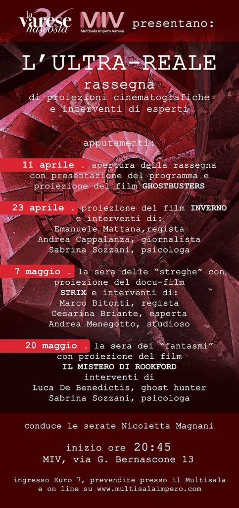 Si terrà domani, 23 Aprile, il secondo appuntamento della rassegna cinematografica “L’ultra-reale”. Una serie di incontri che si svolgono presso il Multisala Impero di Varese organizzati dal gruppo culturale la Varese Nascosta, da sempre in prima linea nel divulgare e far conoscere i luoghi e gli eventi culturali della nostra provincia e della nostra città.