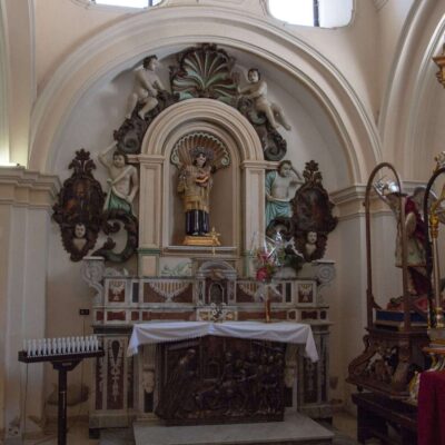 Essa non è da sola, ma accompagnata da quelle di San Michele e San Francesco. Tutte e tre le statue vengono portate nel centro del paese con una sentita fiaccolata. Per l’occasione il paese è addobbato a festa e sono da sempre proposti spettacoli musicali e pirotecnici.