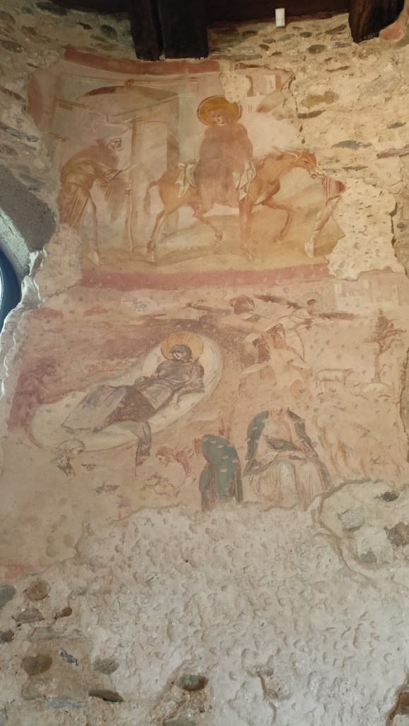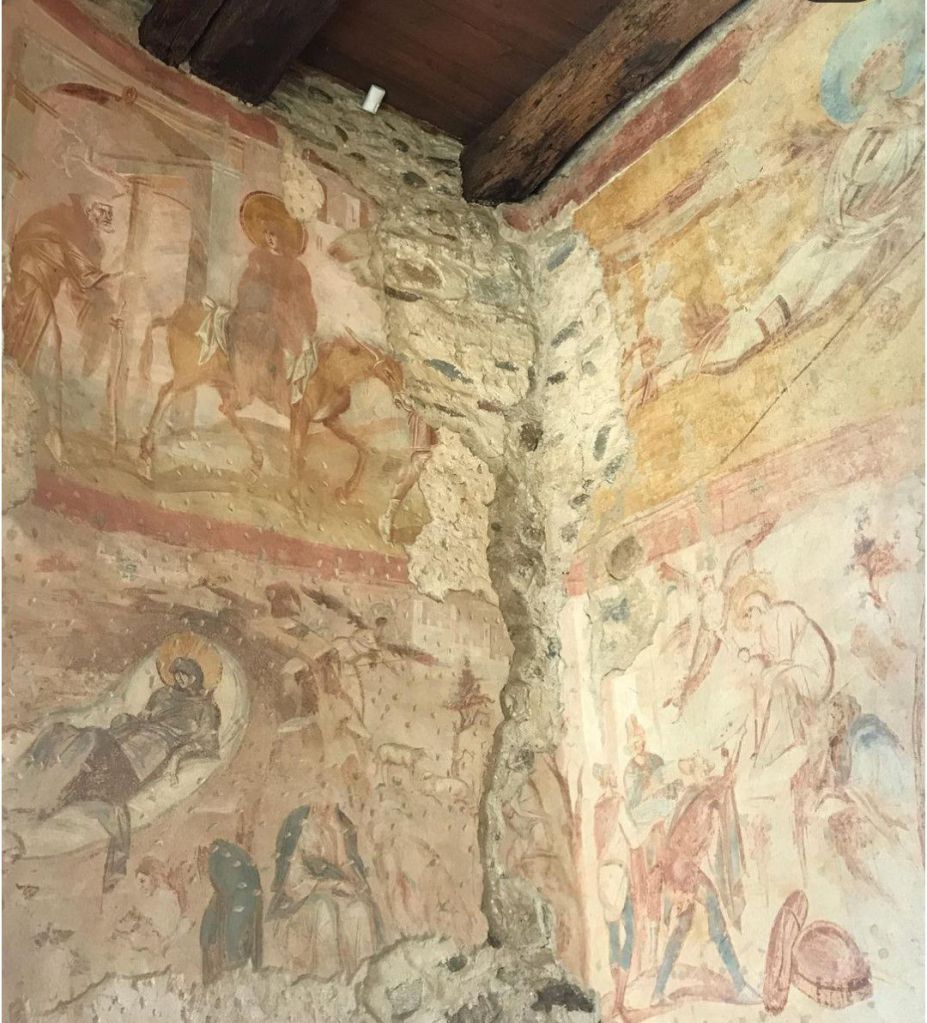 Quello che però gli scavi hanno rivelato è il meraviglioso ciclo di affreschi che occupa l’ abside e si intravede fin dall’ingresso. Opere d’arte che hanno resistito nei secoli e rappresentano una testimonianza di fede assolutamente straordinaria e particolare.