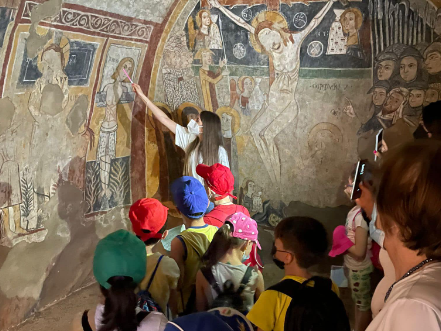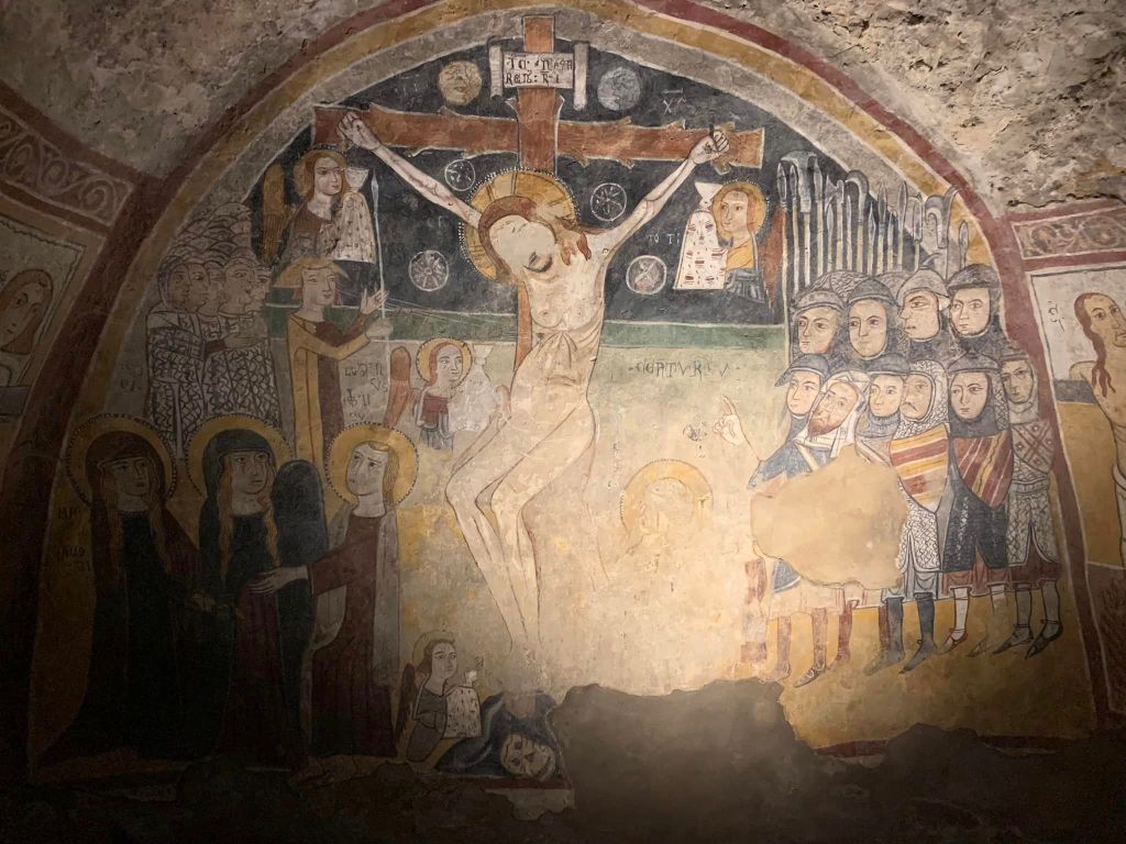 Ai lati della crocifissione, nella parte centrale delle grotte rupestri, possiamo trovare una rappresentazione assolutamente innovativa e dalla prospettiva quasi tridimensionale.