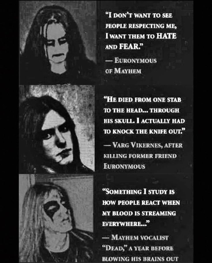 Siamo nei primi anni 80, in Norvegia inizia a farsi strada un nuovo genere musicale: il black metal. Musica martellante, ritmi ossessivi, voci gutturali volutamente distorte. I temi trattati sono vari e molteplici. Si passa dalla dissacrazione dei simboli religiosi, alla rievocazione delle tradizioni celtiche e alla voglia di schioccare e andare oltre ogni forma normale di performance artistica. Le esibizioni sono al limite della blasfemia e spesso anche oggetto di preoccupazione da parte della società “benpensante”.
