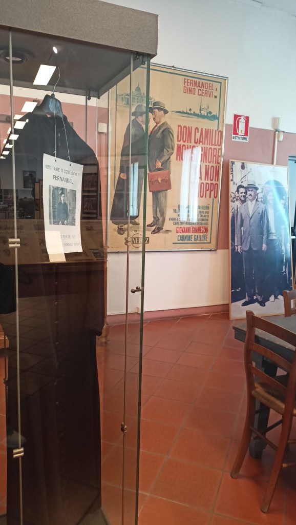 Vi è anche il prezioso abito di Don Camillo, realmente utilizzato da Fernandel e circondato dai tanti simboli religiosi che lo hanno accompagnato. In un contesto perfettamente studiato e accattivante per chiunque voglia conoscere a fondo tutto il mondo legato ai due nemici/amici.