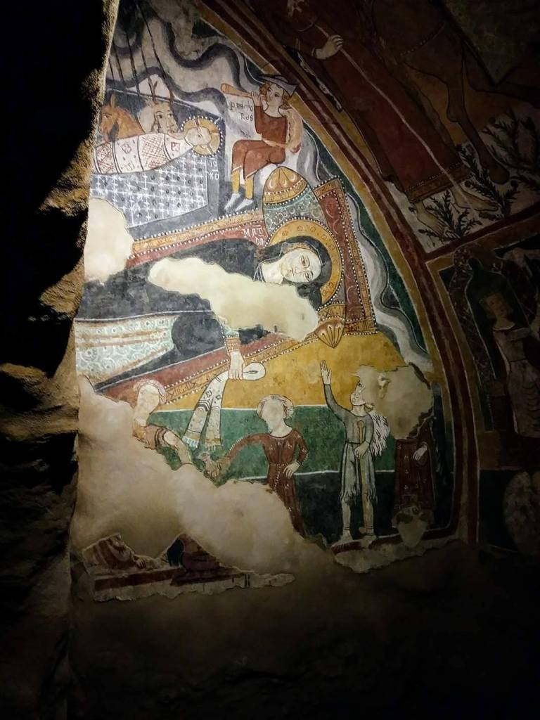 In un piccolo angolo della chiesa rupestre di Sant’Antuono, quasi incorniciato dalla roccia, si trova una natività molto particolare e toccante. Ricca e maestosa nei particolari, racconta un’episodio particolarmente noto nella tradizione orientale. Nella cultura cattolica romana non è stato tramandato e queste opere ne permettono la conoscenza che altrimenti sarebbe andata perduta.