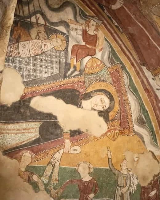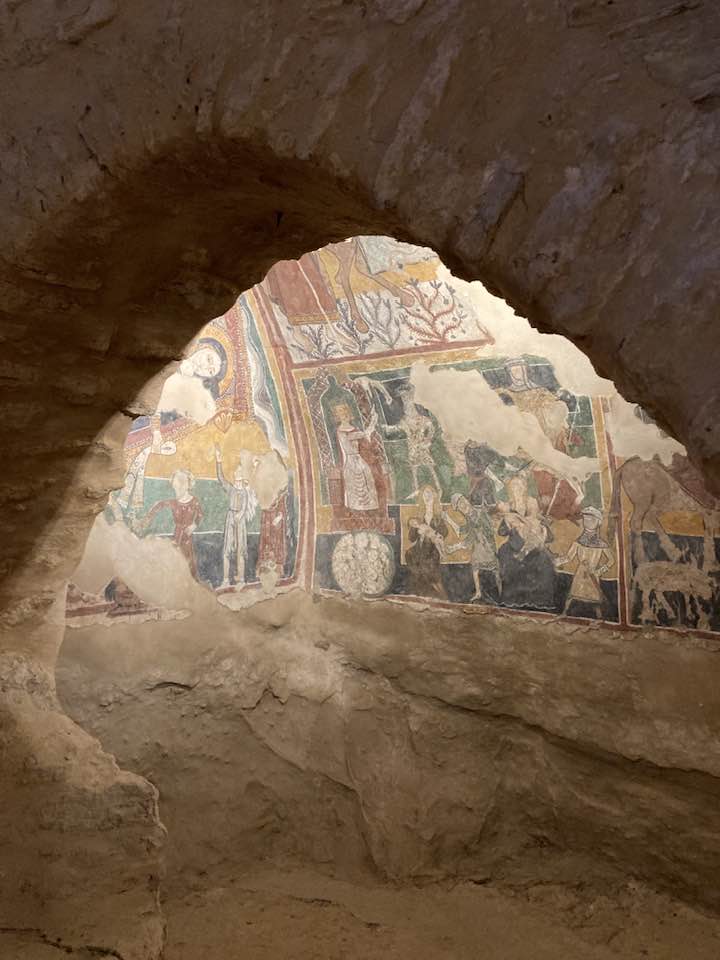 In questa piccola nicchia infatti, in una posizione assolutamente perfetta e ideale, è rappresentato questo episodio toccante e profondamente ricco di significato. Tra l’altro, quasi perfettamente conservata a differenza di altre pitture presenti. L’allocazione ha giovano assolutamente alla conservazione stessa di questa meraviglia. Protetta da intemperie e quasi nascosta, generando nei visitatori uno stupore genuino e sentito.