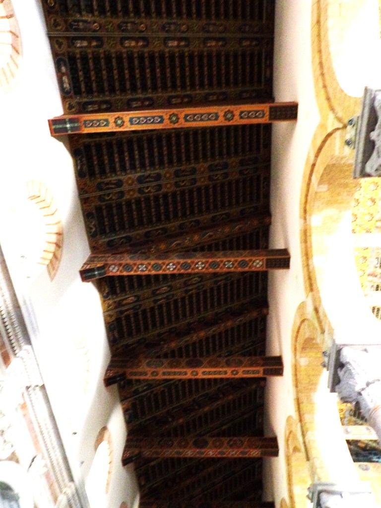 La struttura si compone di tre navate. Quella centrale è occupata da tredici colonne, contrassegnate da un soffitto di ispirazione tipicamente arabo- bizantina, ricostruito nel 1943.