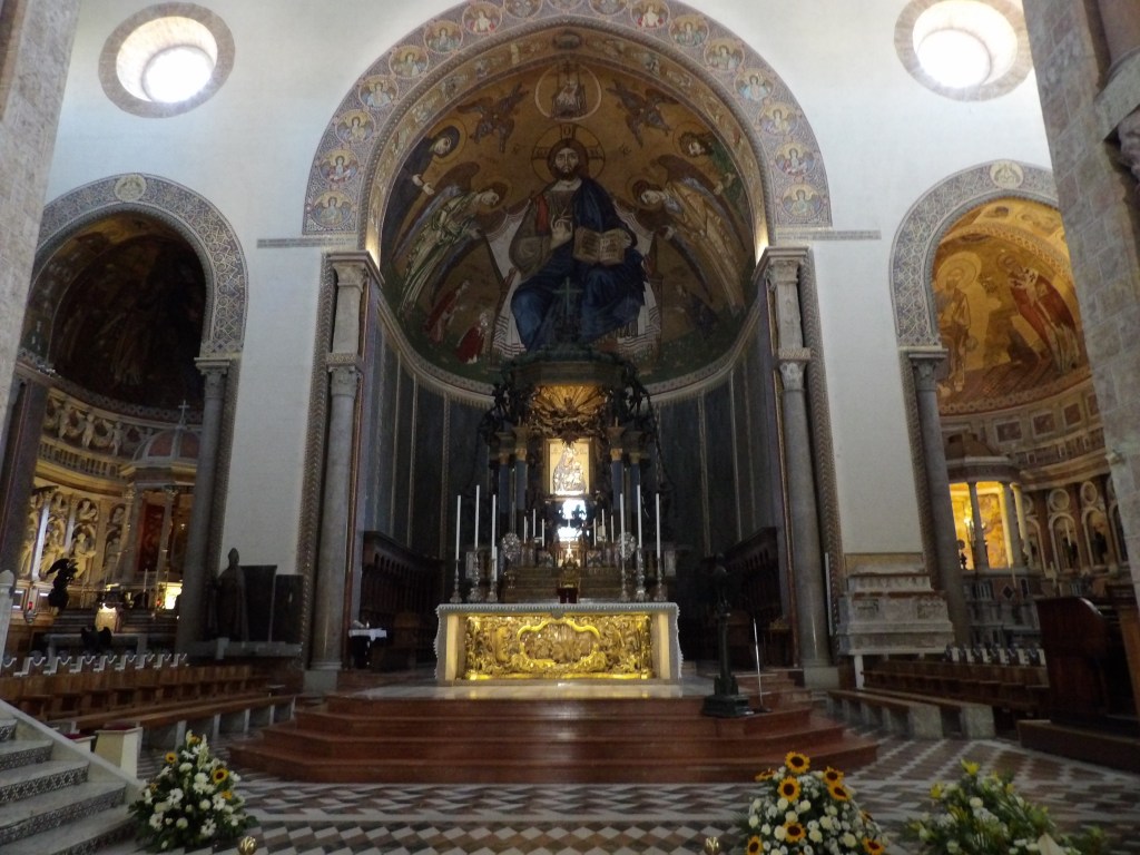 In fondo è possibile ammirare il Cristo Pantocratore, fedele riproduzione del modello trecentesco.