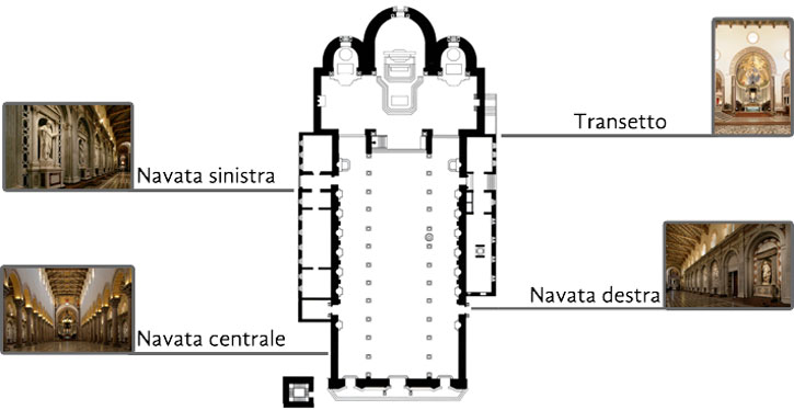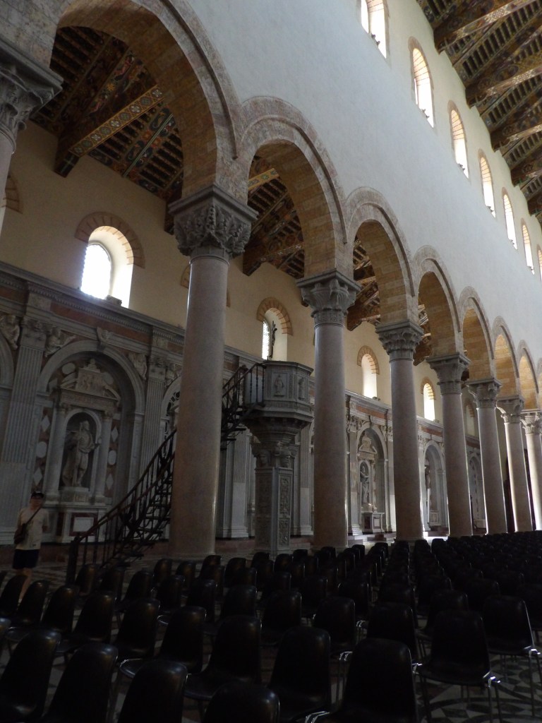 Nelle navate sono presenti sei cappelle ciascuna: in esse sono rappresentati gli apostoli. Tuttavia si tratta di riproduzioni, in quanto le copie originali furono distrutte durante il bombardamento.