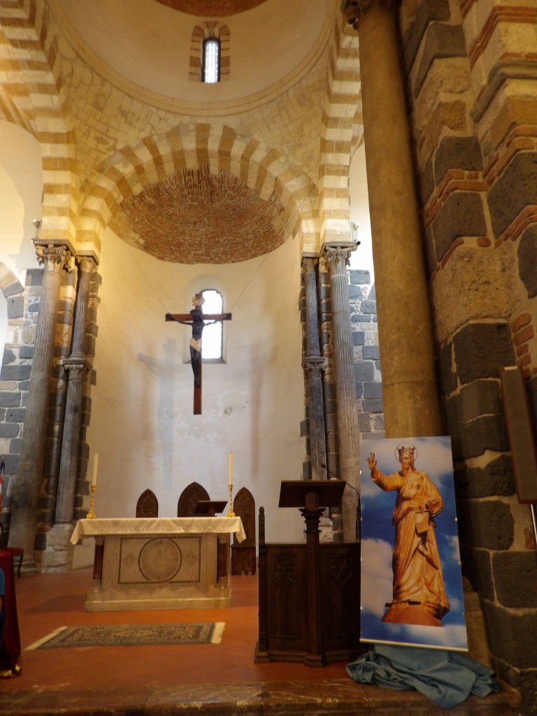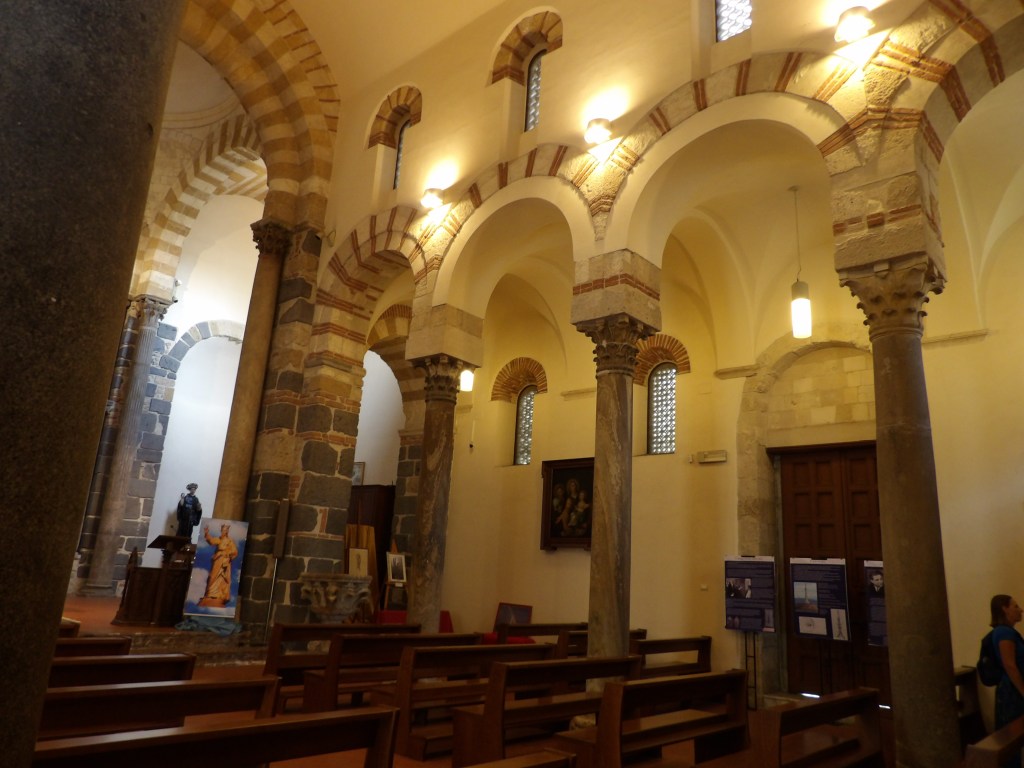 Gli interni, semplici ma suggestivi, richiamano fedelmente alle influenze che hanno interessato l’edificio religioso. In particolare, nell’uso delle pietre, nel richiamo a diverse forme geometriche e nella presenza di archi di ispirazione orientale, visibili anche in diversi monumenti spagnoli come la grande moschea di Cordoba.