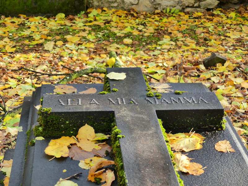 Una lapide molto toccante e scenografica è quella dedicata ad una mamma, spesso le foglie che si adagiano sopra di essa creano una sorta di coperta naturale colorata e che il vento sposta quasi come una danza.