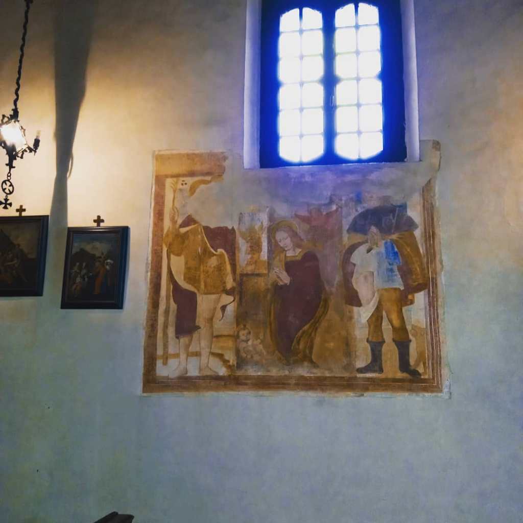 L’edificio religioso presenta una pianta rettangolare, con una sola navata, presbiterio rettangolare ed un piccolo campanile. La facciata è a capanna, e una volta entrati nell’antico catino absidale, si può trovare un meraviglioso ciclo pittorico della prima metà del Cinquecento, precisamente 1530. Dottori della Chiesa, gli Evangelisti, la fuga in Egitto e l’Adorazione dei Magi: queste sono le scene raffigurate.