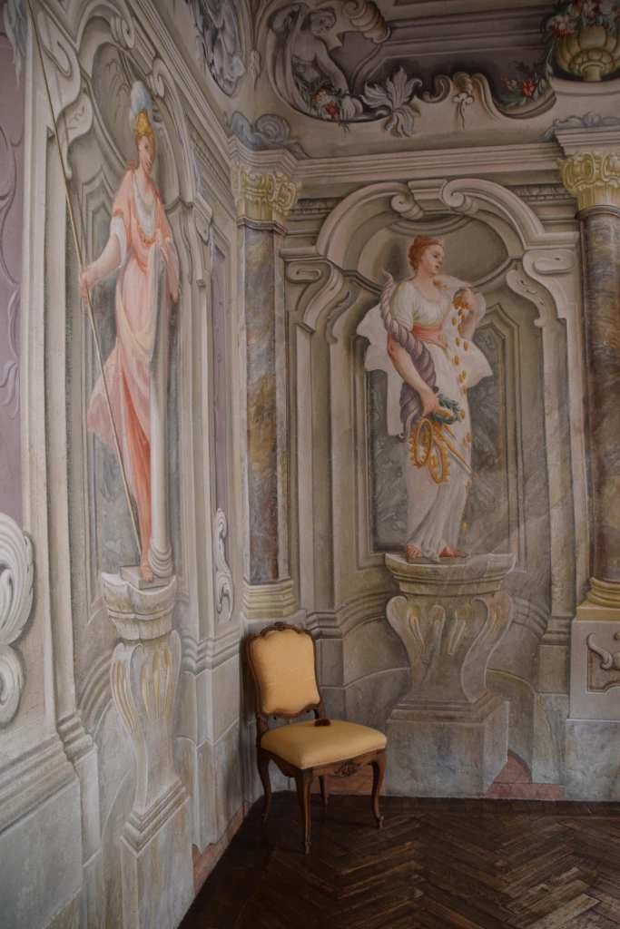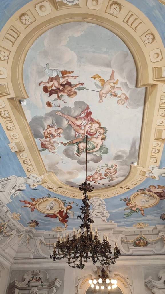 Una delle prime stanze che si ammirano è il salone da ballo, con un pavimento appositamente studiato, dalla superficie liscia, per permettere il movimento ai danzatori in modo agevole e confortevole. Accanto a questo ambiente vi è Il salottino della musica. Al suo interno sono custoditi un’arpa e un pianoforte, alcuni divani e poltrone, dietro i quali si apre l’alcova.