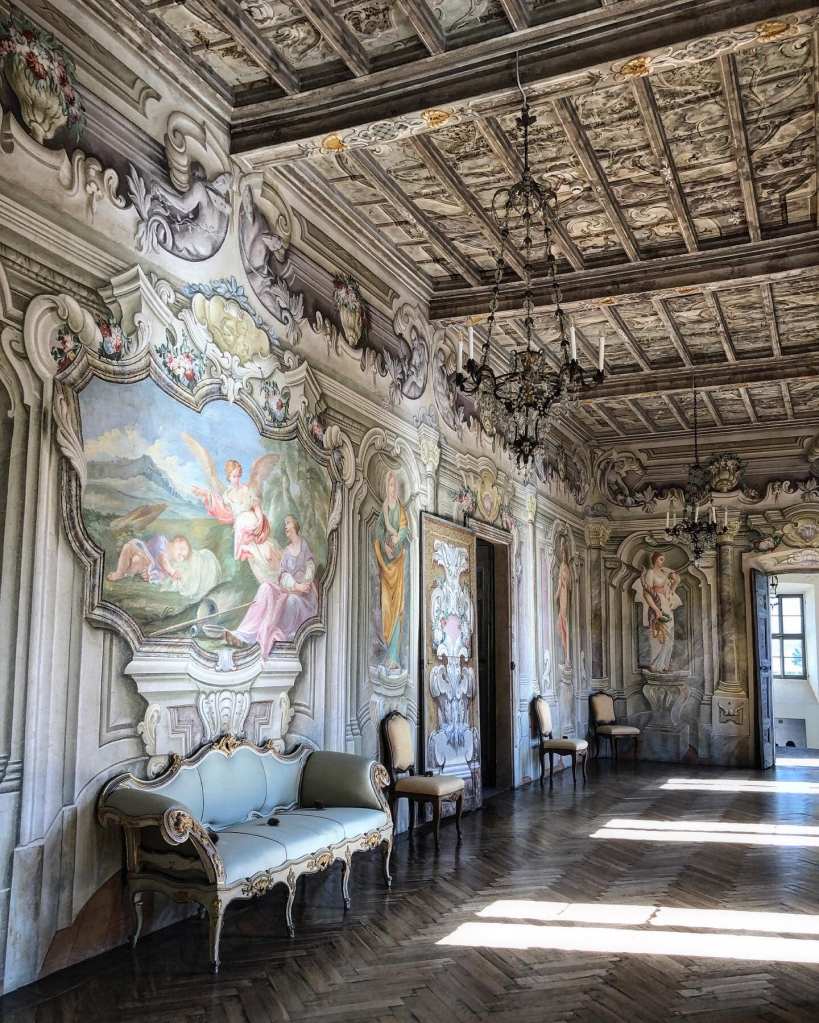 Il corridoio che la caratterizza è uno dei più famosi del territorio al cui interno sono presenti affreschi di figure femminili che rappresentano le Virtù: Liberalità, Fortezza, Vigilanza, Mitezza, Prudenza, Fama e Temperanza.