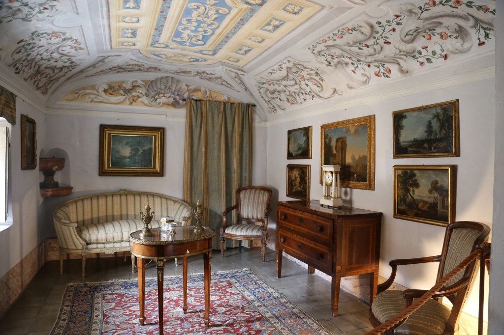 Incantevoli le camere da letto dai toni verde e giallo, comunemente definite con questi colori. La prima raffigura affreschi sulla vita di Mosè mentre la seconda ospita un bellissimo letto a baldacchino circolare in seta collocato in un ambiente arricchito da arredi d’epoca.