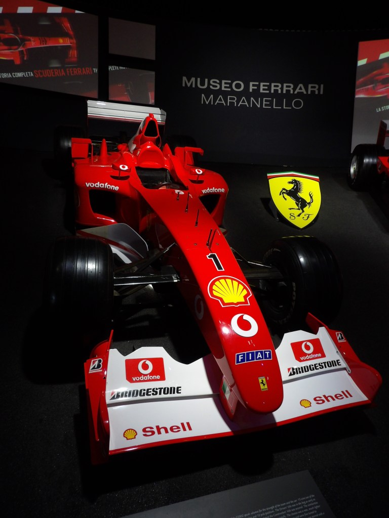 Una delle ultime sale è dedicata al grande sogno Ferrari: macchine da corsa F1, campioni immortali e trofei internazionali.