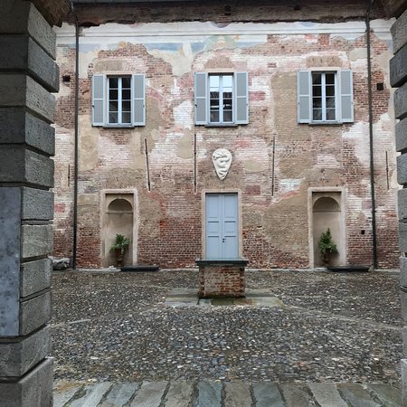 Il primo cortile è di epoca barocca, mentre il secondo quattrocentesco. In quest’ultimo si trova lo stemma visconteo, caratterizzato dal biscione. Il baluardo è visibile in diverse costruzioni della zona, come il castello di Gerenzano. Prova che il dominio della famiglia meneghina fu esteso e capillare.