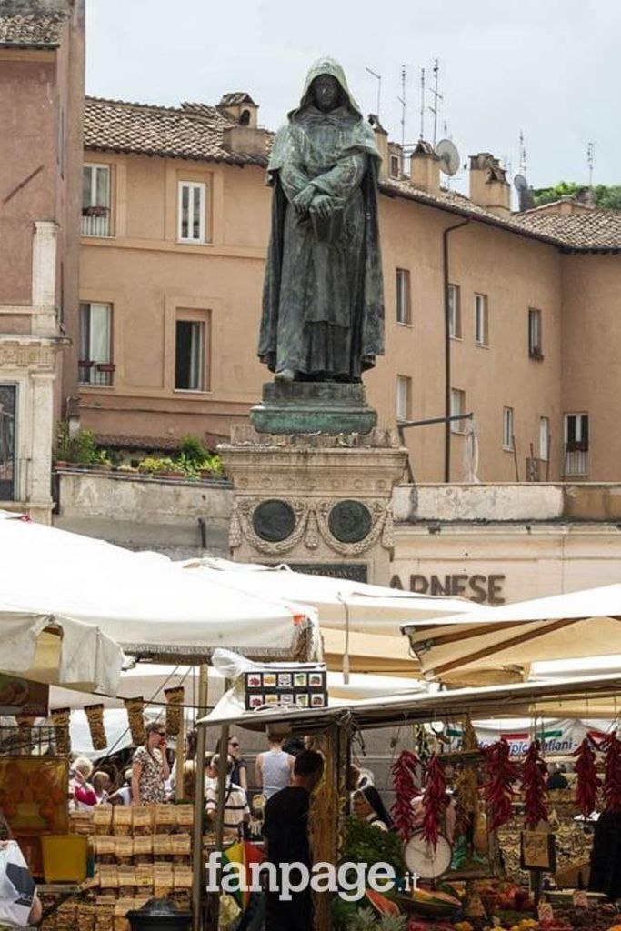 Numerosi intellettuali firmarono una petizione per realizzarla: Walt Whitman, Victor Hugo e Henrik Ibsen. Da allora l’opera dello scultore Ettore Ferrari domina questa piazza molto frequentata e il suo sguardo severo è rivolto proprio verso il Vaticano, a mo’ di sfida!