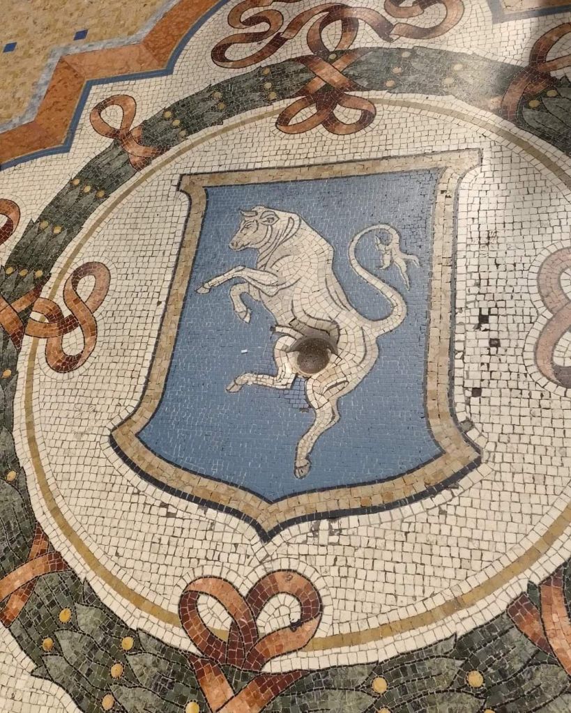 Tra queste si ricorda anche Torino, città sabauda prima capitale d’Italia, grazie al toro rappresentato in un bellissimo mosaico.
