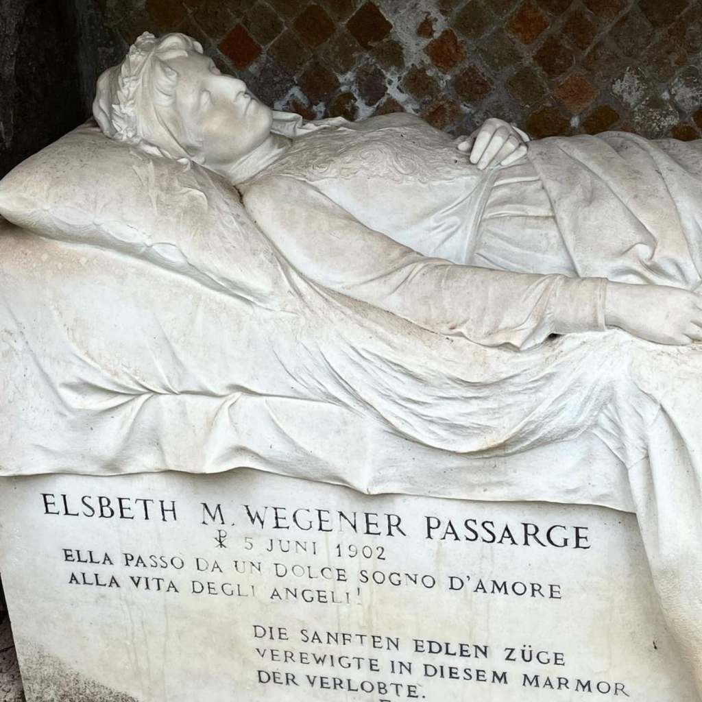 Qui, il suo promesso sposo, che fu anche uno sculture, decise di realizzare una tomba che la rappresentasse ancora con il vestito da sposa sopra un letto, e si racconta che, ogni tanto, si vede ancora il suo fantasma che vaga di notte cercando la sua dolce metà.