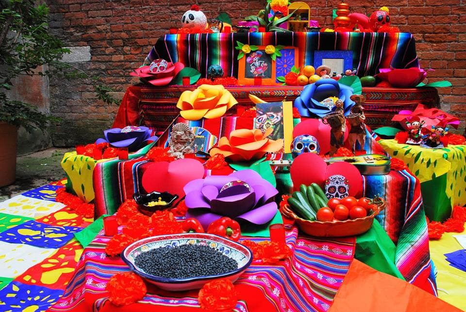 In Messico cade il 2 novembre, proprio come in Italia, e molte famiglie allestiscono un altare dedicato ai loro defunti nelle proprie abitazioni: l’altare non è solo un oggetto su cui posare voti, ricordi, doni e fotografie, ma rappresenta un portale tra la vita e la morte. Infatti ogni altare deve avere alcuni precisi elementi: