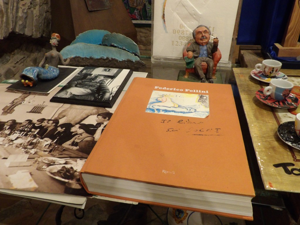 Riguardo proprio a Fellini, è presente un prezioso e raro volume scritto proprio da lui e donato al poeta, suo grande amico.
