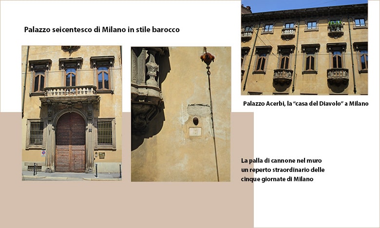 Questo stesso palazzo fu prima immune alla peste manzoniana, resistette poi ad una cannonata austriaca del 1848 portandone ancora i resti: all’esterno infatti è visibile una palla di cannone infissa nella facciata. Uscì poi indenne anche dai bombardamenti della seconda guerra mondiale. E così la storia s’intrecciò alla leggenda.