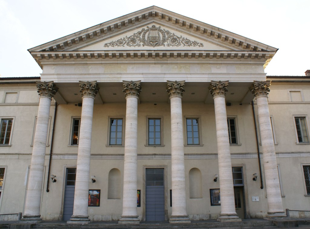 Il Teatro Sociale si inaugura il 28 agosto 1813, anno di nascita di Giuseppe Verdi e Richard Wagner. Fu costruito nell’area in cui sorgeva il Castello della Torre Rotonda, su progetto dell’architetto Giuseppe Cusi. Molti furono gli interventi e i restauri del Teatro Sociale: nel 1838 intervento di manutenzione straordinaria; nel 1855 vi fu l’ampliamento del teatro con l’aggiunta di 38 palchi; nel 1864 arriva l’illuminazione a gas e nel 1899 la luce elettrica.