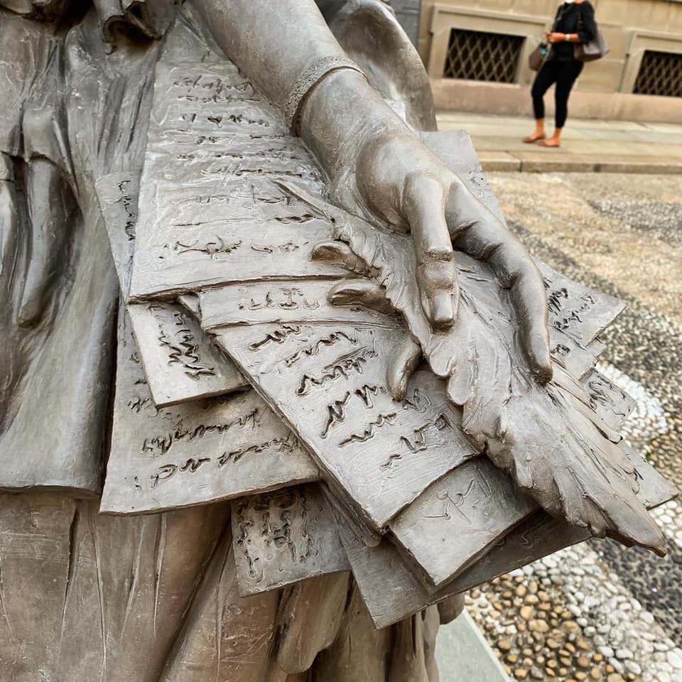 A questa donna, celebre in tutta Europa nell’ottocento per l’impegno politico e sociale e poi inspiegabilmente dimenticata, Milano dedicò, a 150 anni dalla morte, la prima statua che rappresenta una donna non a tema religioso, posta al centro di Piazza Belgioioso, di fronte al palazzo di famiglia e accanto a casa Manzoni.
