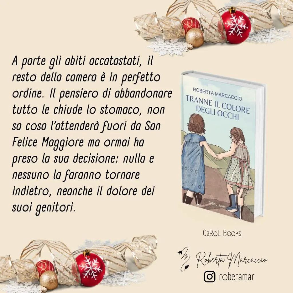Ci sono autori che sanno scavare nel cuore, e Roberta Marcaccio è una di questi. Sempre scrittrice delicata e profonda, racconta storie che sono frammenti di vita ed emozioni. Veri e penetranti al pari dei sentimenti che lasciano il segno. Come se attraverso i personaggi frutto della sua grande fantasia di scrittrice, lei abbia posto molti degli archetipi d’esistenza degli esseri umani.
