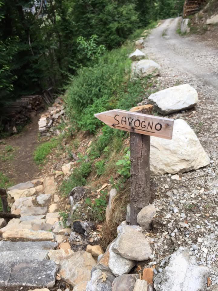 Per raggiungere il borgo di Savogno, si prende la mulattiera in pietra che ha inizio presso la località Sarlone a Borgonuovo di Piuro.