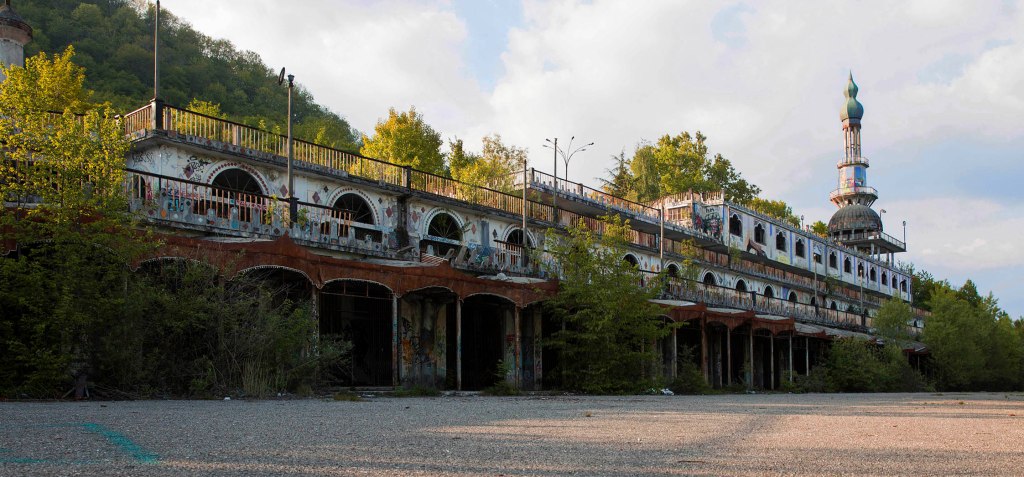 Furono quindi costruiti edifici commerciali e di intrattenimento nelle più svariate forme architettoniche: una galleria commerciale arabeggiante con minareto, che nell’ultimo piano ospitava dei piccoli appartamenti per le vacanze, una pagoda cinese, un castello medievale come porta di ingresso, un albergo di lusso (l’Hotel Plaza). Venne anche spianata la collina di fronte al paese per migliorare la vista panoramica verso il Resegone.