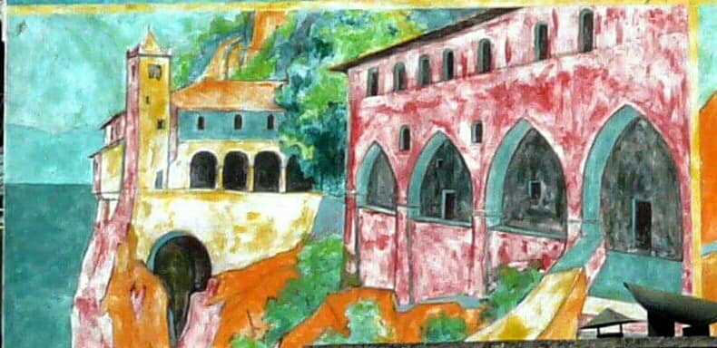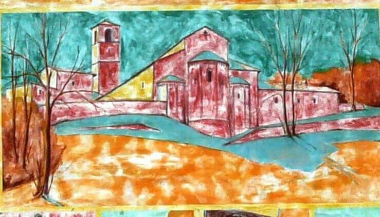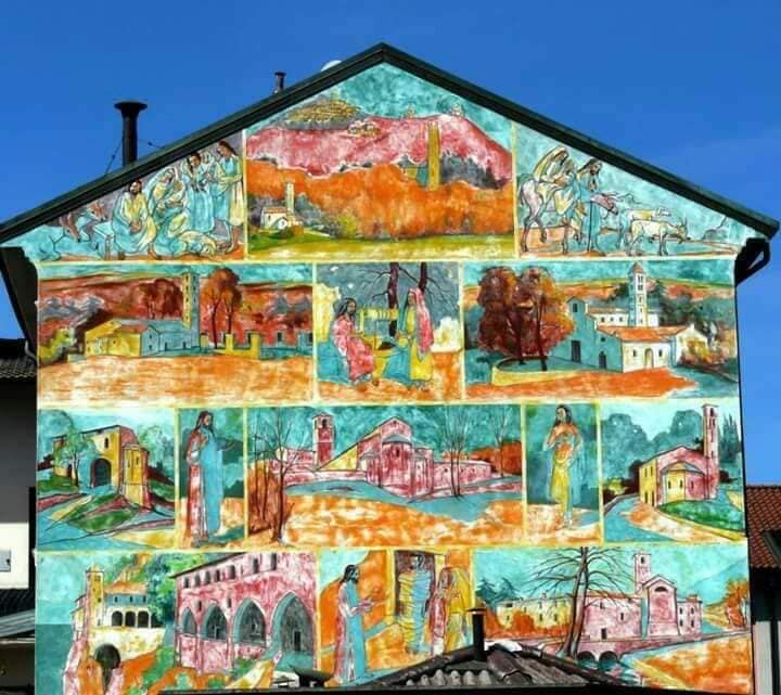 Ecco l’affresco imponente di Renato Reggiori, artista nato a Caravate nel 1932, che ,dopo gli studi classici, Renato Reggiori frequentò l’Accademia di Brera.