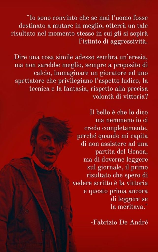 Dopo la liberazione la sua carriera di cantautore andò avanti e uscì il suo primi album interamente in lingua genovese “Creuza de ma” che rimarrà celebre per la scelta linguistica oltre che per i temi affrontati. La vita sregolata – da presto Faber si dedica all’alcol – compromettono la sua salute e nel 1998 gli viene diagnosticato un tumore ai polmoni. Morirà qualche mese dopo, nel gennaio del 1999 a soli 59 anni.