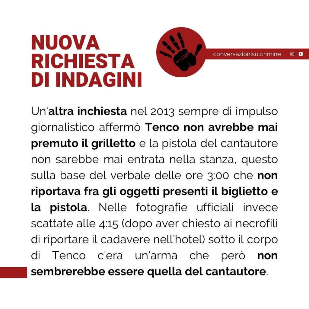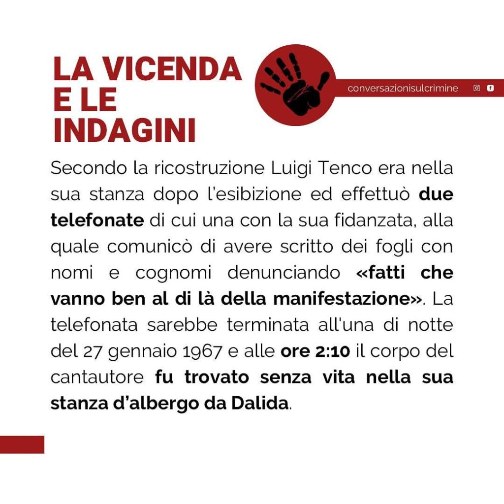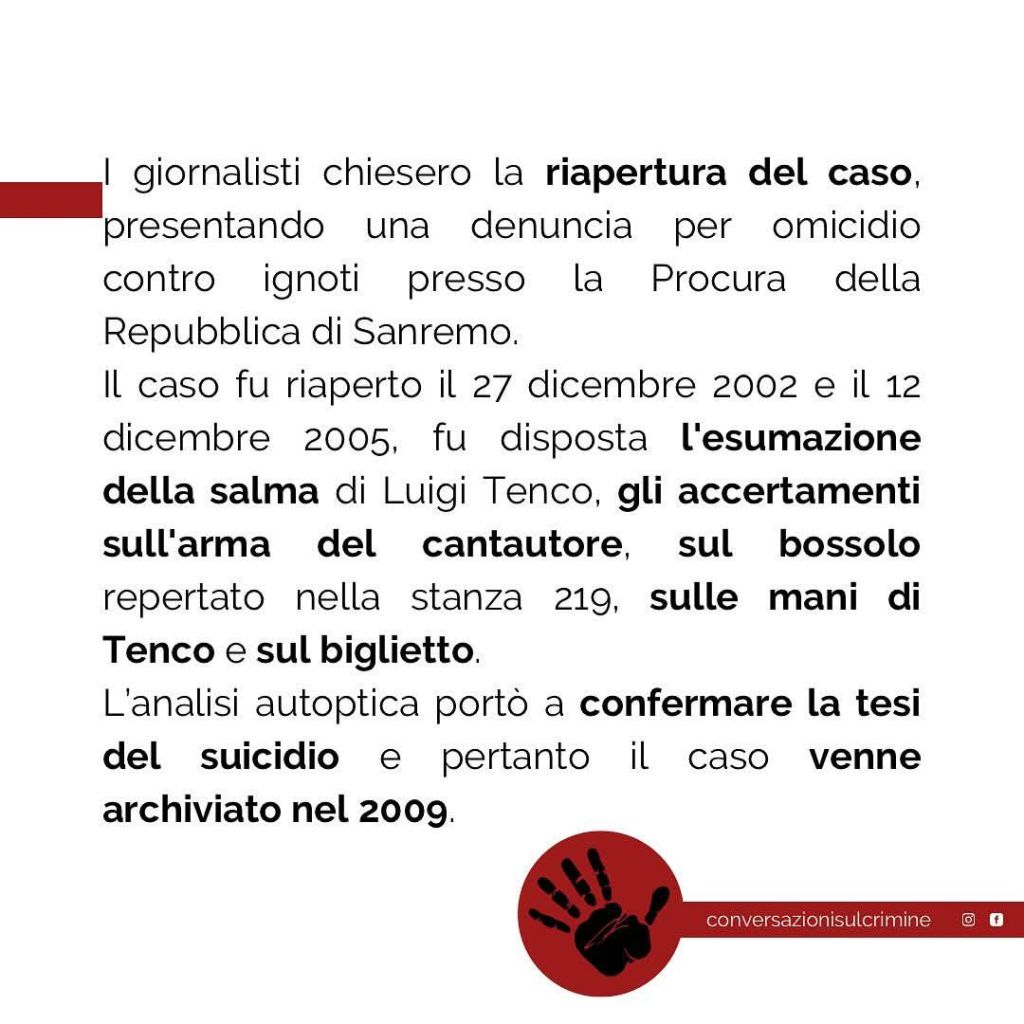 A differenza di chi disse, sempre sul palco dell’ Ariston, che Tenco giocava con la pistola, si trattò di un suicidio.