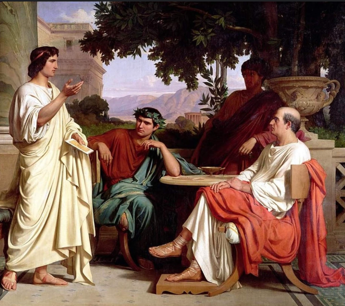 L’incontro con Virgilio e Mecenate. In seguito, frequentò a Napoli la scuola epicurea di Sirone in compagnia di Virgilio. Iniziata l’attività poetica con gli “Epodi” e le “Satire”, nel 39 fu presentato proprio da Virgilio a Mecenate, che ben presto lo legò a sé come amico e gli donò un podere nella Sabina: un’amicizia che non poté non alimentare le invidie e le malelingue dei ricchi romani del tempo.