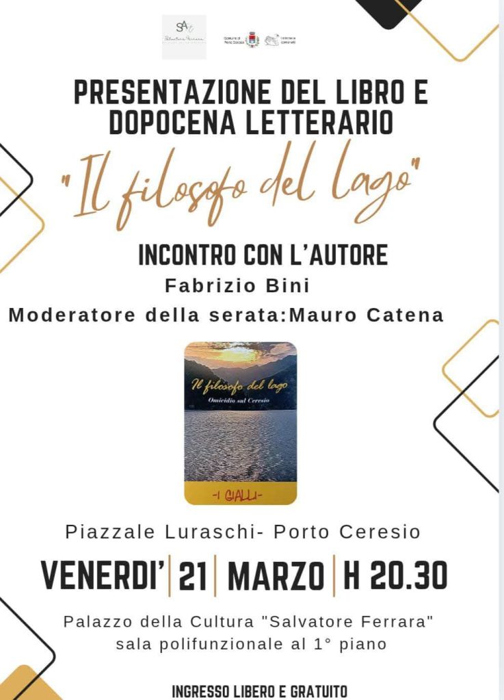 Fabrizio Bini, avvocato e scrittore noto ed apprezzato in tutta Italia, ha presentato la sua opera meravigliosa e suggestiva:” Il filosofo del Lago”.