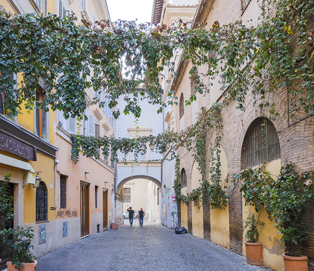 Un ‘piccolo borgo’ nella città eterna , con le sue viuzze e vicoli rigorosamente ricoperti di sampietrini e le case antiche ricoperte di rampicanti. Perso in un epoca e in un ritmo tutto suo, unico ed inimitabile. Raccolto eppure aperto agli occhi curiosi dei tanti visitatori che ne affollano le strade.