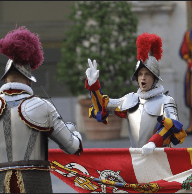 “Con coraggio e fedeltà” è il motto di un corpo armato molto particolare: quello delle guardie svizzere che da oltre 500 anni protegge il Pontefice e presidia la Città del Vaticano.