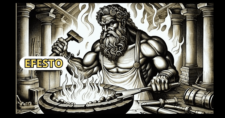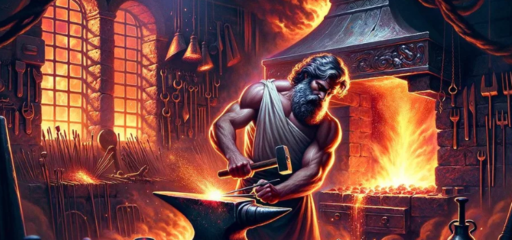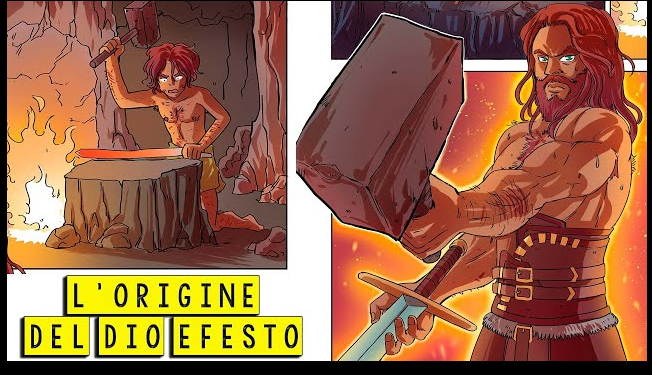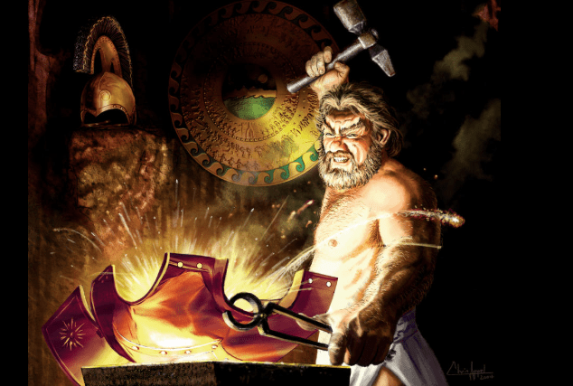 Dopo la caduta, Efesto fu salvato dai Sinti e crebbe sull’isola di Lemno, dove sviluppò le sue abilità di fabbro.