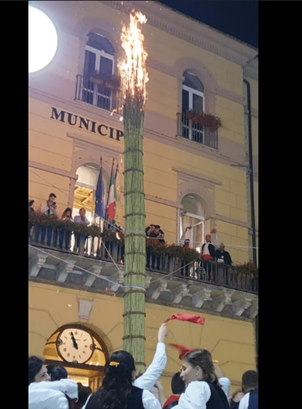 Esso avviene con l’accensione della “Iaccara”, ossia un grande fascio di canne e legna del peso di una tonnellata, che viene trasportato a spalla e incendiato in piazza. Una tradizione che segna la fine di un periodo e l’inizio di un nuovo ciclo di eventi.