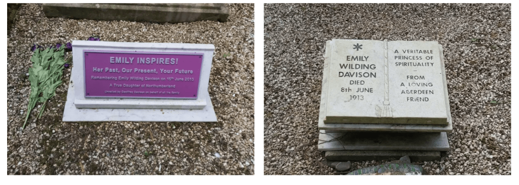 Il suo funerale fu trasformato in un’imponente manifestazione pubblica con migliaia di suffragette vestite di bianco, viola e verde, consolidando la sua figura come martire del movimento. Sulla sua tomba a Morpeth è inciso il motto della WSPU: “Deeds not words” (Fatti, non parole).