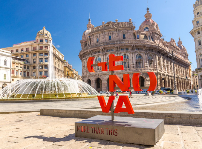 La piazza principale, Piazza De Ferrari, è adornata con la monumentale fontana in bronzo, il Teatro Carlo Felice e Palazzo Ducale.