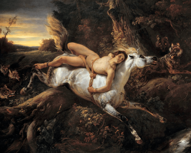 Il cuore del poema descrive il viaggio straziante di Mazeppa legato al cavallo imbizzarrito attraverso la natura selvaggia dell’Europa orientale.