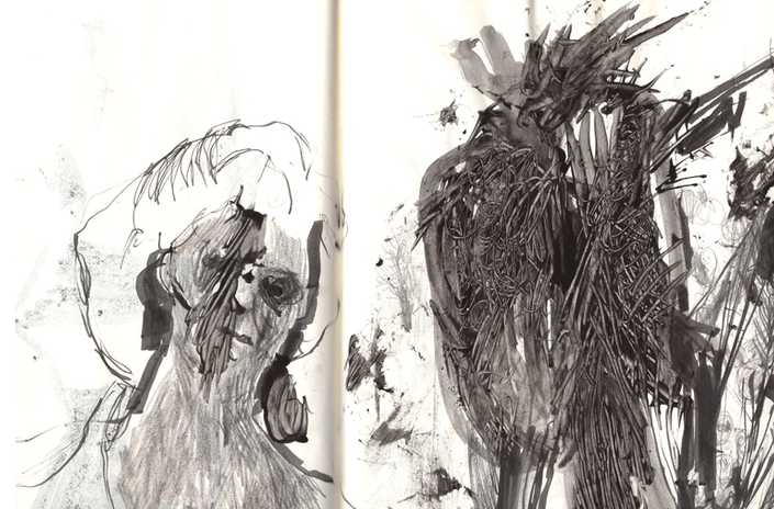 - Vorrei mi parlassi del taccuino della quarantena: sono disegni crudi, a tratti anche violenti. Come se volessi urlare un dolore ed uscire dai confini stessi dell’opera. Immagino che non sia stato un periodo facile.